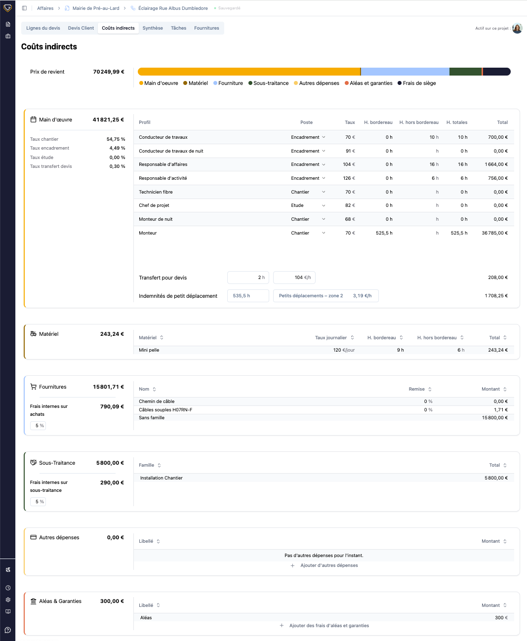 Avec le détail précis de vos coûts, validez sereinement vos devis et facilitez le lancement de vos projets.