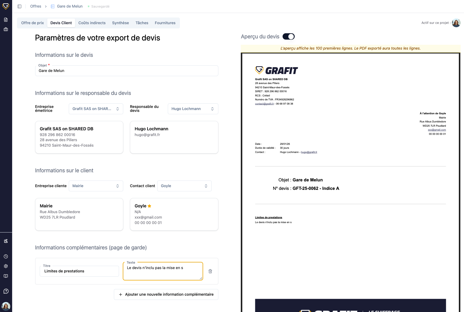 Finalisez la présentation de vos Prix de Vente et générez sans effort le devis au format attendu par votre client.