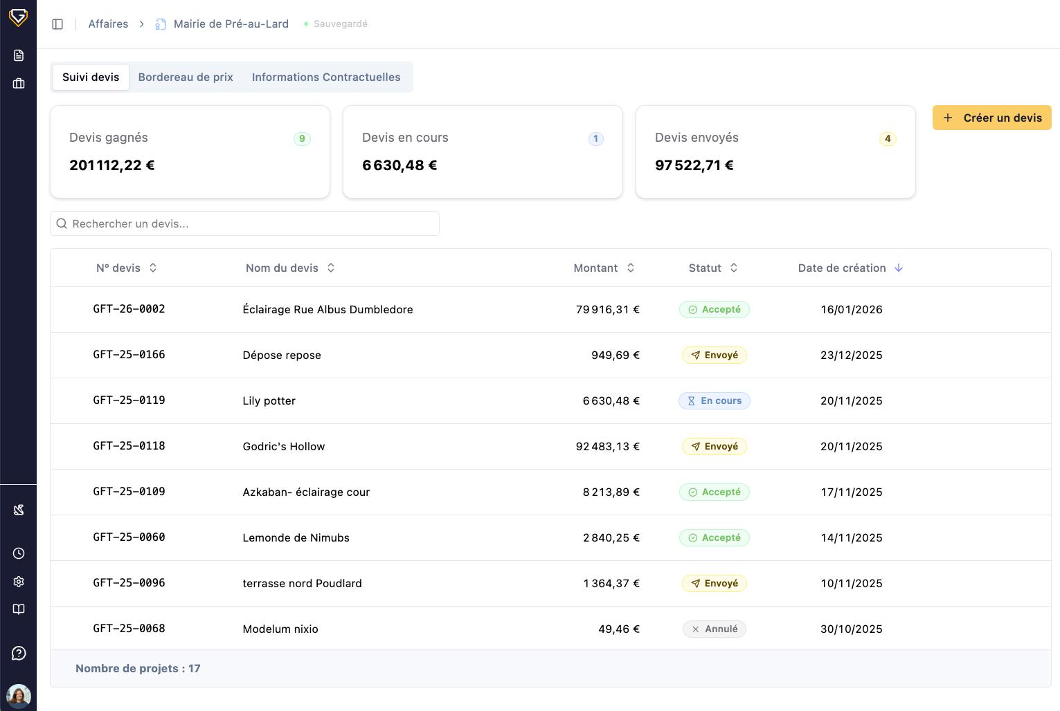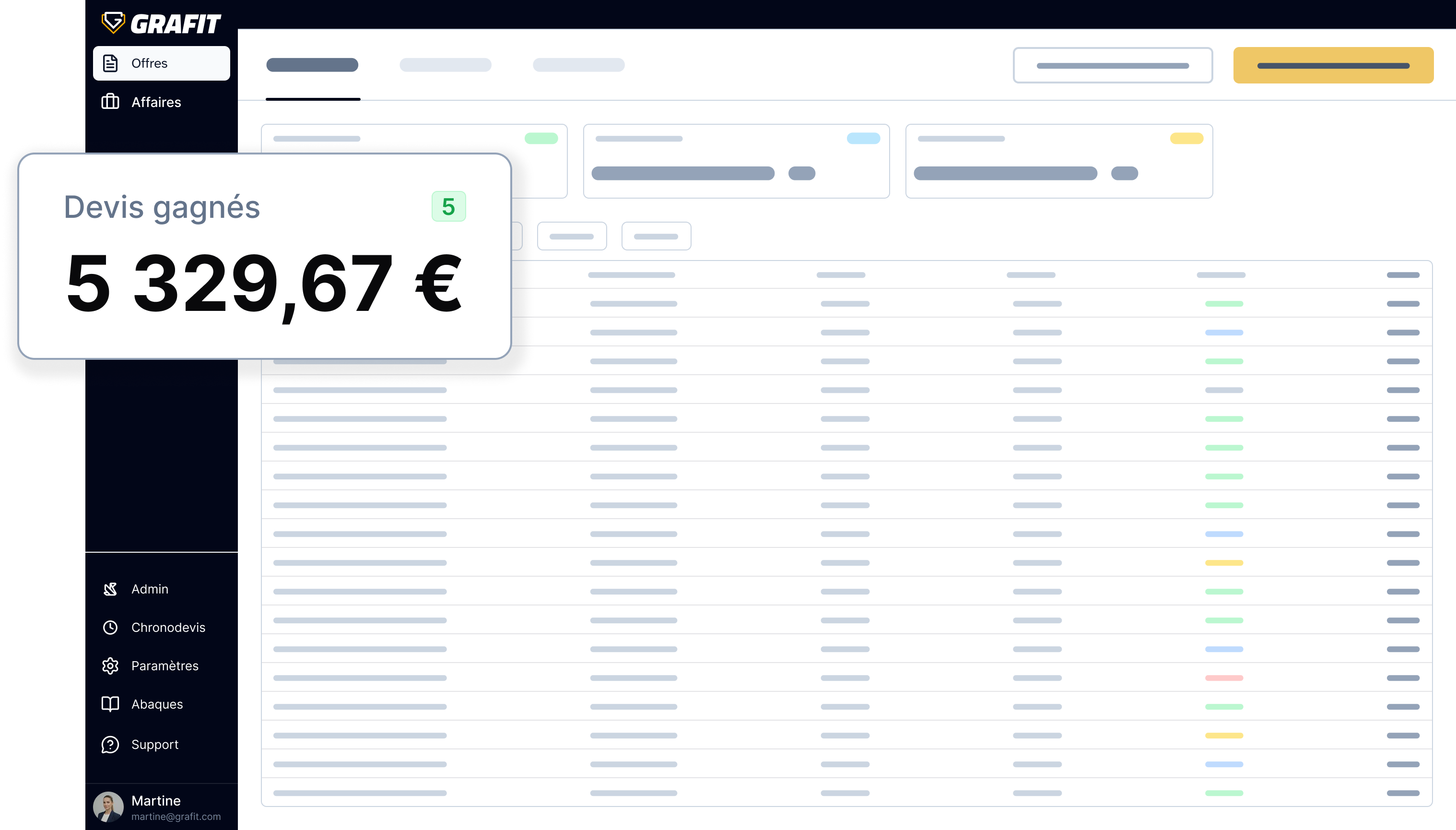 Gardez une vue sur toute votre activité commerciale, visualisez et validez chaque devis en un coup d’oeil.