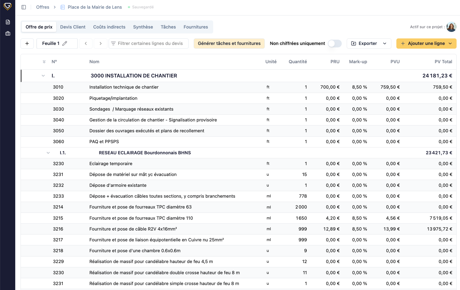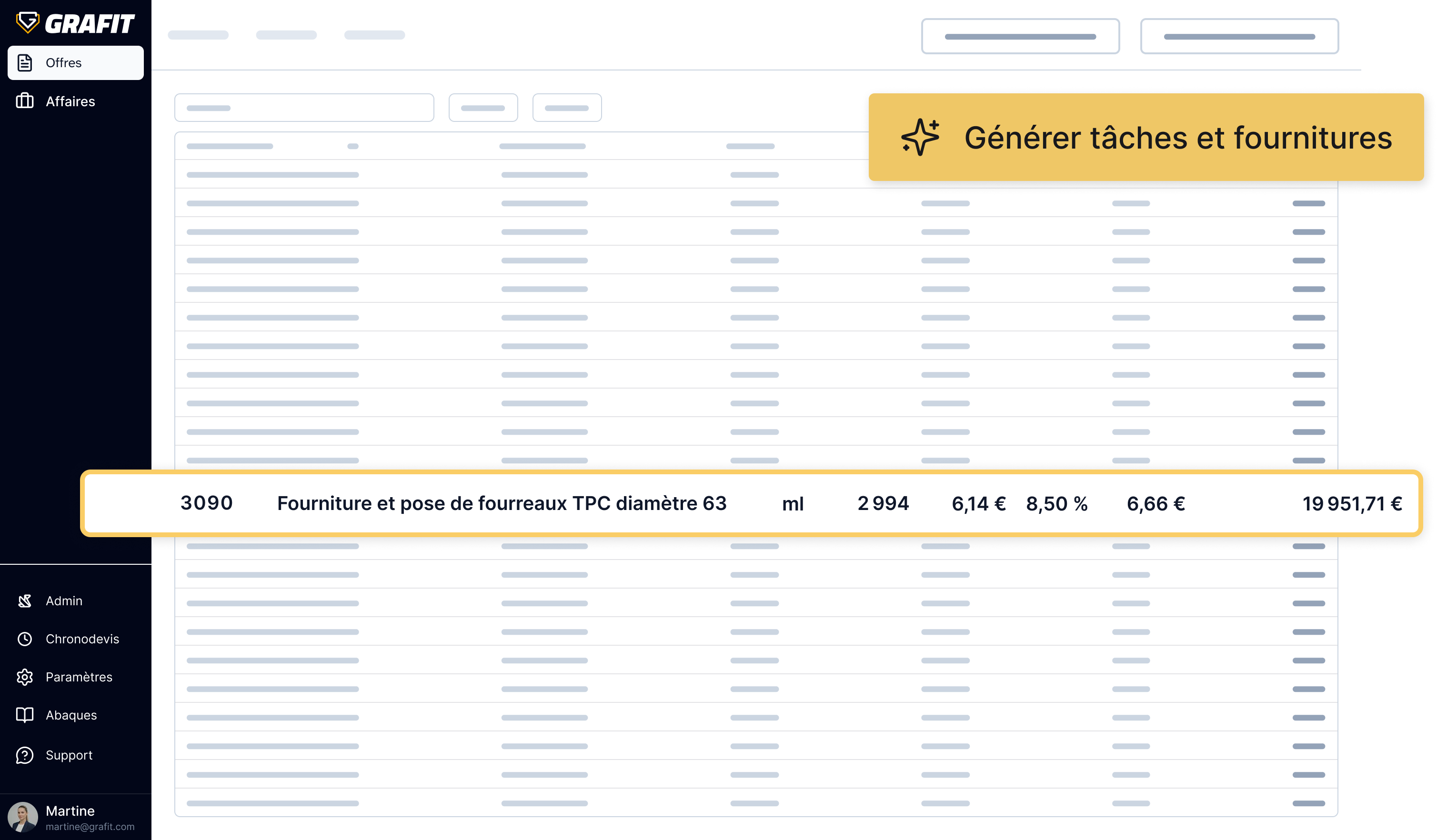 Notre assistant IA vous aide à compléter les lignes de prix sur la base de vos catalogues et de vos temps méthodes personnalisés